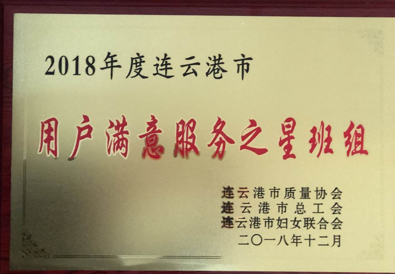 1月15日上午,全福公司工作人員從連云港市經(jīng)信委領(lǐng)取了連質(zhì)協(xié)[2018]20號(hào)《關(guān)于表彰2018年度“連云港市用戶滿意服務(wù)之星”創(chuàng)建活動(dòng)先進(jìn)集體和個(gè)人的決定》文件、證件及獎(jiǎng)牌,全福公司榮獲