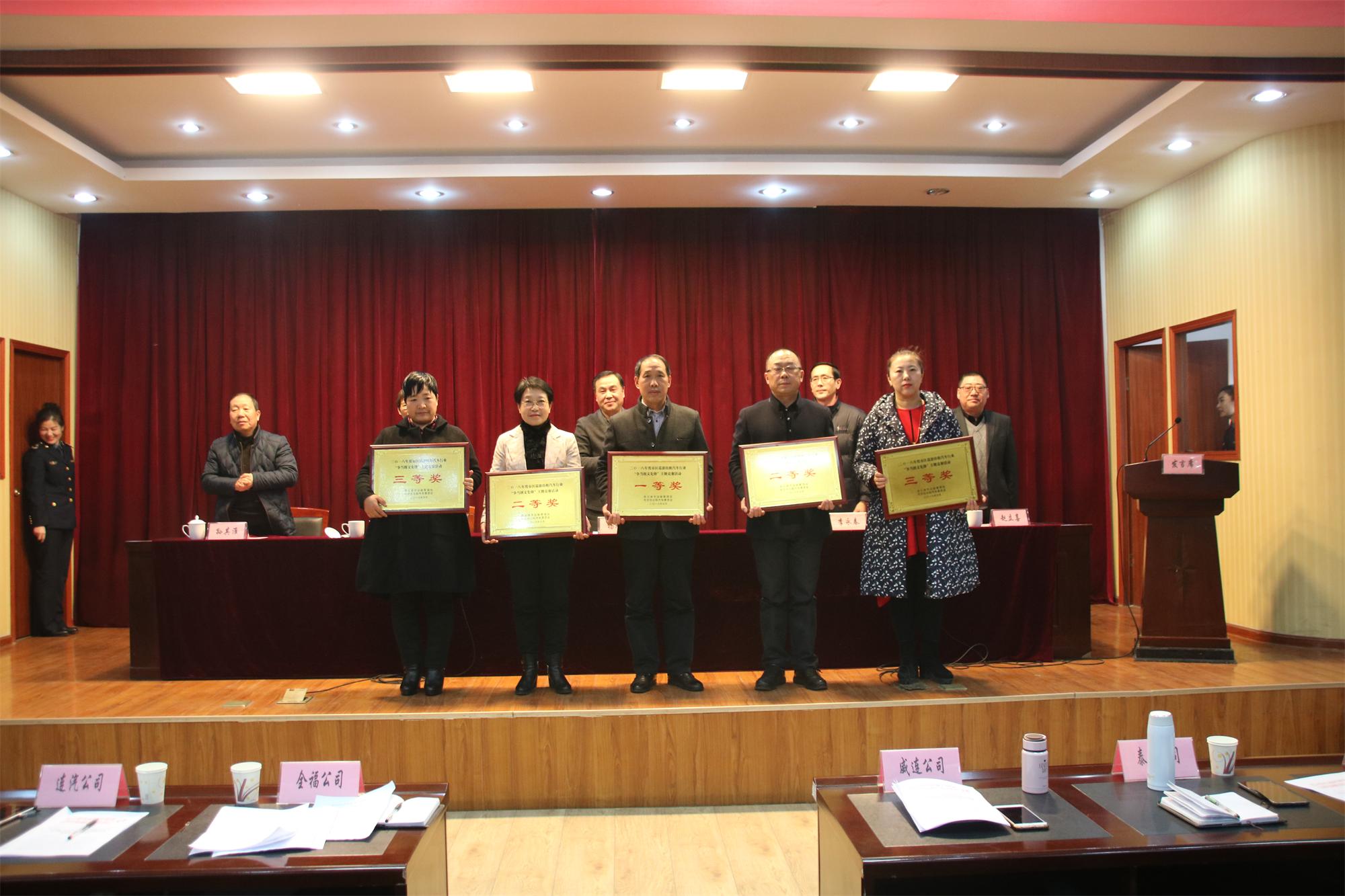 “爭當(dāng)創(chuàng)文先鋒”文明服務(wù)主題競賽活動總結(jié)表彰會,市交通運(yùn)輸局黨委委員、副調(diào)研員楊旭東、市運(yùn)管處黨委書記李永春、副處長李敏、汽服公司副總經(jīng)理趙立喜、出租行業(yè)協(xié)會會長孫其準(zhǔn)等領(lǐng)導(dǎo)為獲獎的市區(qū)五家出租公司及十位優(yōu)秀出租車駕駛員頒發(fā)了證書。全福公司榮獲“爭當(dāng)創(chuàng)文先鋒”主題競賽活動一等獎,駕駛員章文彩、李鴻祥、江希勇獲得“爭當(dāng)創(chuàng)文先鋒”優(yōu)秀駕駛員殊榮。