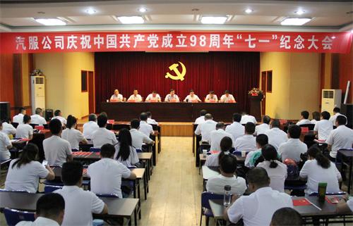 為紀(jì)念中國(guó)共產(chǎn)黨建黨98周年,進(jìn)一步激勵(lì)廣大基層黨組織和共產(chǎn)黨員發(fā)揮戰(zhàn)斗堡壘和先鋒模范作用,6月28日下午,汽服公司隆重召開(kāi)慶祝建黨98周年暨“七一”表彰大會(huì),公司領(lǐng)導(dǎo)班子成員、權(quán)屬單位中層干部、黨員干部、入黨積極分子、優(yōu)秀大學(xué)生代表及部分職工代表共計(jì)120余人參會(huì)。集團(tuán)黨委副書記、汽服公司董事長(zhǎng)陳金師及集團(tuán)派駐第二紀(jì)檢組長(zhǎng)徐大江應(yīng)邀參加了會(huì)議。會(huì)議由公司副總經(jīng)理趙立喜同志主持。
