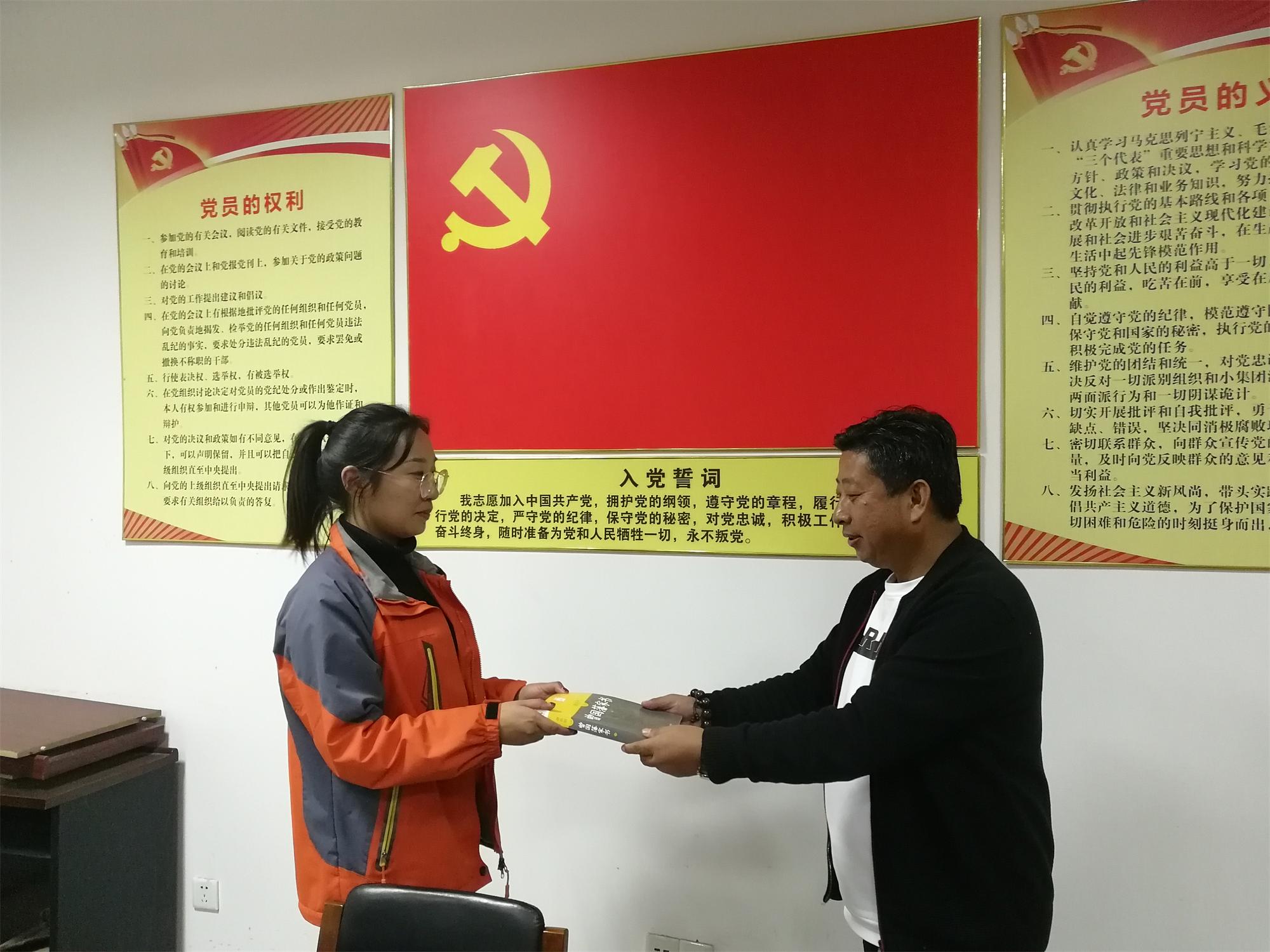 活動前,支部副書記申俊連帶領大家學習了《習近平關于“不忘初心、牢記使命”論述摘編》部分章節(jié)。隨后,申俊連和生日黨員分別面向黨旗舉起右拳,重溫了入黨誓詞。申俊連跟年輕黨員們分享了自己從1987年11月入黨至今的成長歷程以及入黨歷程,并發(fā)表了“黨員政治生日”感言,他認為作為一名黨員要做到對黨忠誠、有擔當、講奉獻,做合格黨員。要不忘初心,克己奉公、樂于奉獻,時刻牢記自己是一名共產黨員,為年輕黨員做好表率,最后申俊連為生日黨員送上了生日禮物《曾國藩家書》讀物。