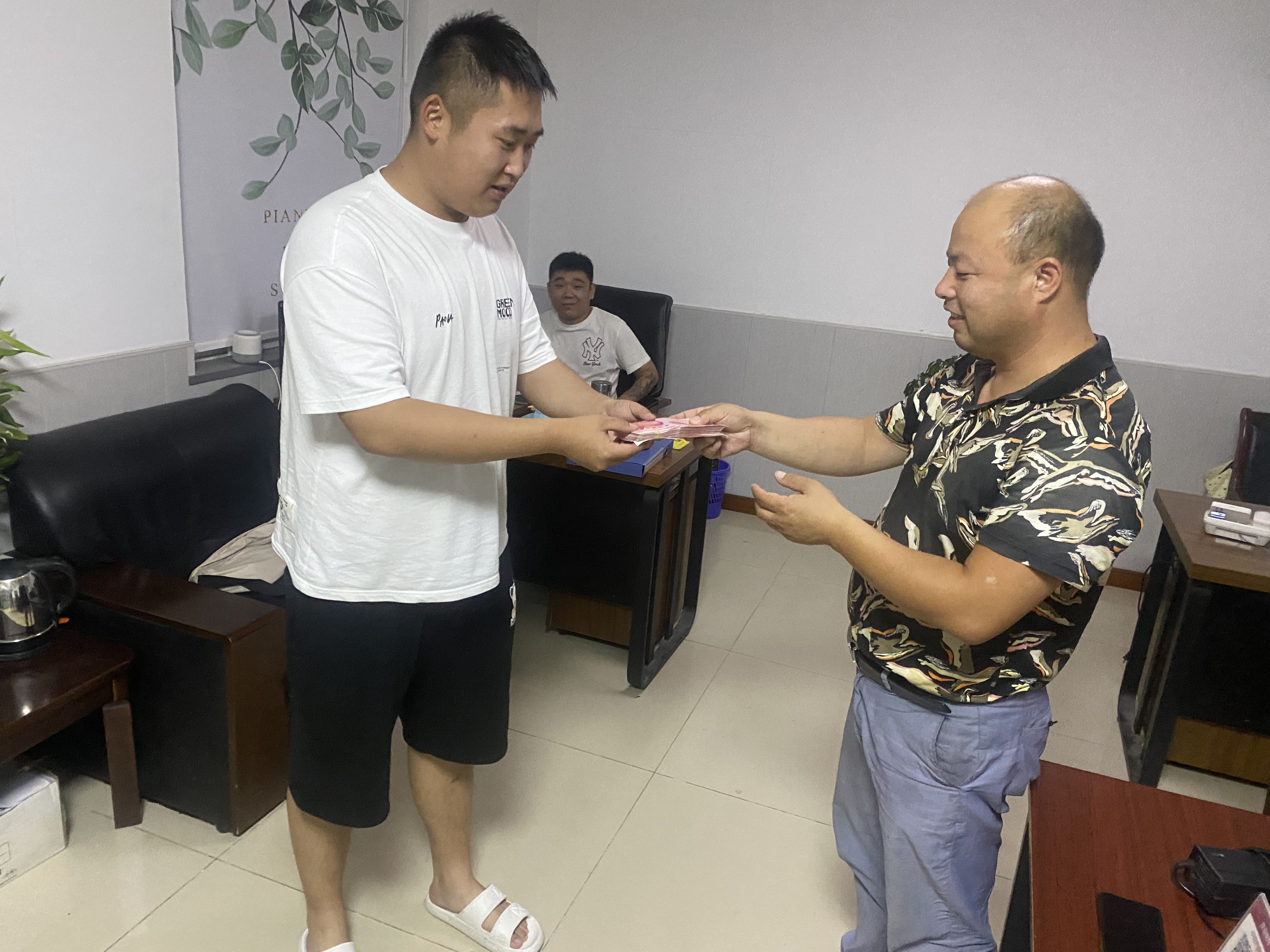 據(jù)了解,25日夜里11點40分左右,陸先生從國安大廈附近乘坐連汽出租公司穆傳寶師傅駕駛的蘇G57618車到中德國際商務(wù)大廈下車。下車時不慎把一萬元現(xiàn)金忘在出租車上了,陸先生說當(dāng)時他發(fā)現(xiàn)現(xiàn)金丟了,真是急壞了,就像熱鍋上的螞蟻不知所措。穆師傅在送完陸先生后繼續(xù)在路上營運,當(dāng)他停下休息并為車輛進(jìn)行消毒時,發(fā)現(xiàn)后座上一沓厚厚的現(xiàn)金。穆師傅吃了一驚:這是哪位乘客丟的?丟了這么多錢可是要急壞了!在沒有發(fā)現(xiàn)乘客聯(lián)系方式情況下。穆師傅急忙把錢送到公司,工作人員調(diào)取監(jiān)控確定丟失錢物的是陸先生,但因為沒有乘客的聯(lián)系方式,穆師傅和工作人員只能在公司等待失主來電。在等待了20分鐘后終于等到了陸先生打來的求助電話,工作人員和陸先生說明了情況,并讓陸先生不要著急,現(xiàn)金已經(jīng)在公司妥善保管,現(xiàn)在可以到公司核實領(lǐng)回。