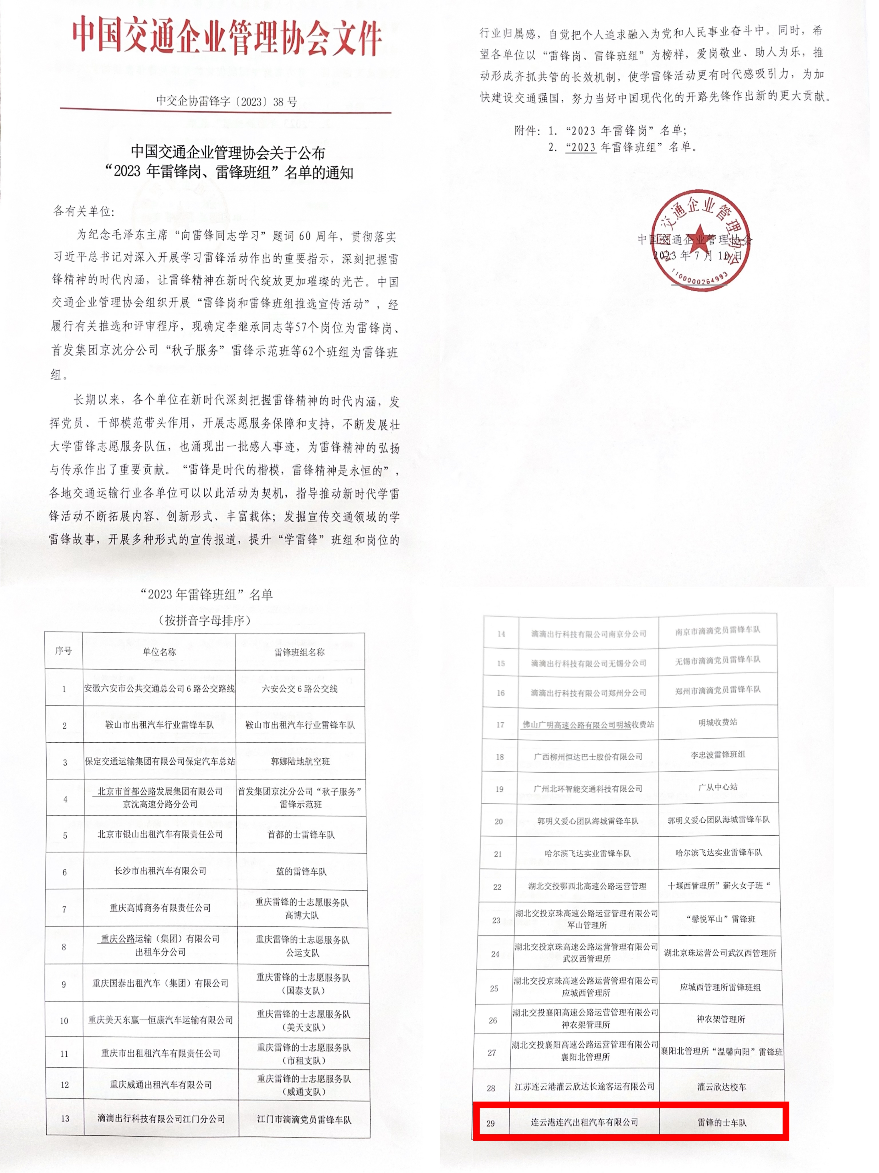 8月10日,中國交通企業(yè)管理協(xié)會公布2023年度全國交通行業(yè)雷鋒崗和雷鋒班組名單,連汽出租汽車有限公司“雷鋒的士”車隊榮獲“雷鋒班組”榮譽稱號。