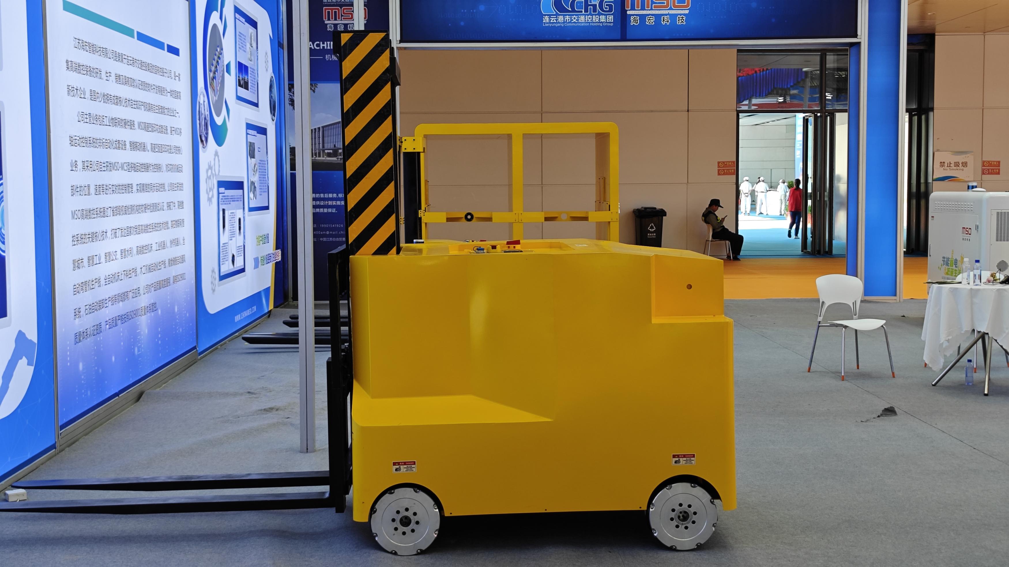 海宏科技現(xiàn)場(chǎng)演示了“AMR全向移動(dòng)智能叉車”,該產(chǎn)品采用公司自主研發(fā)的MSO-MC3型號(hào)多軸運(yùn)動(dòng)控制系統(tǒng)作為控制核心,精準(zhǔn)控制多軸間的差速運(yùn)轉(zhuǎn),通過(guò)搭載的麥克納姆輪實(shí)現(xiàn)原地360°轉(zhuǎn)向移動(dòng),橫向平移,斜行漂移,機(jī)身配置激光雷達(dá),防碰撞預(yù)警雷達(dá),衛(wèi)星定位等傳感器,可實(shí)現(xiàn)場(chǎng)內(nèi)自主導(dǎo)航,自主路徑規(guī)劃,自動(dòng)駕駛,賦予了智能叉車在有限的空間內(nèi)閃轉(zhuǎn)騰挪,進(jìn)退有度的傲人本領(lǐng)。AMR全向移動(dòng)智能叉車可廣泛應(yīng)用于智能制造,智能倉(cāng)儲(chǔ),智慧物流等領(lǐng)域,實(shí)現(xiàn)機(jī)器代人,標(biāo)準(zhǔn)化自動(dòng)化搬運(yùn),全面賦能企業(yè)智慧化轉(zhuǎn)型和數(shù)字化改造。