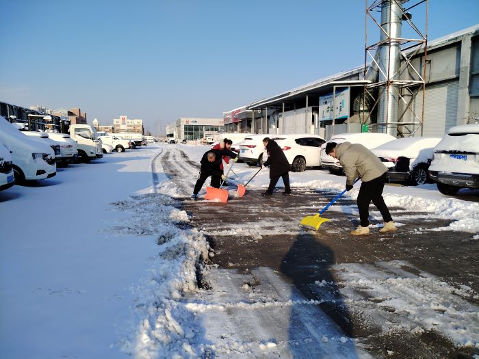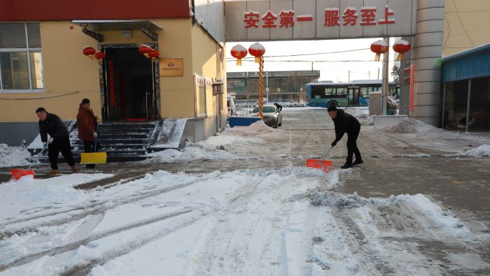 活動現(xiàn)場,干部職工們不畏嚴(yán)寒、冒著颼颼襲來的雪花和寒風(fēng)或三五組隊,或兩人協(xié)力,或一字排開協(xié)同推進,使勁揮動著鐵鍬、掃帚等工具,將積雪集中堆放到路邊,盡管大家的臉都凍得通紅,但手中的掃雪工具卻不停,經(jīng)過不間斷多輪掃雪奮戰(zhàn),大家終于將公司的主要入口、主干道等地的積雪逐漸鏟除,有效消除了安全隱患,切實保障了廣大職工的出行安全和各項業(yè)務(wù)安全生產(chǎn),用實際行動向職工和來公司的客戶傳遞了冬日的溫暖與關(guān)懷。