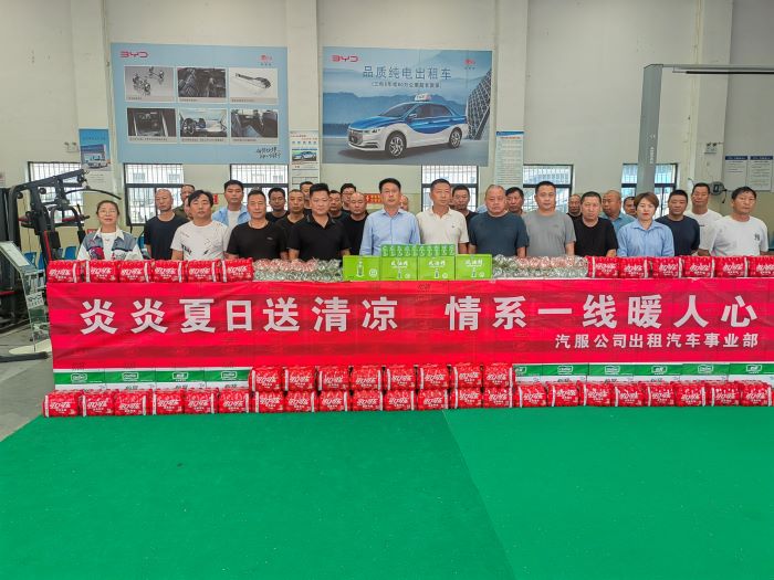 7月19日上午,汽服公司到出租汽車事業(yè)部為雷鋒志愿服務(wù)車隊的駕駛員送清涼,為奮戰(zhàn)在高溫下的駕駛員們送去了精心準(zhǔn)備的純凈水、飲料、杯子、清涼油、安全錘等防暑降溫和安全用品,用實際行動傳遞著對駕駛員的深切關(guān)懷。