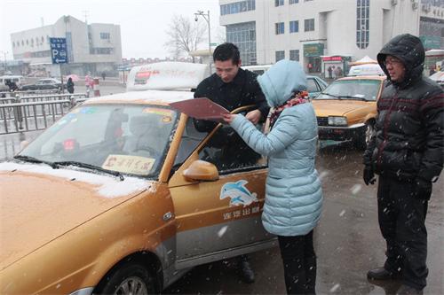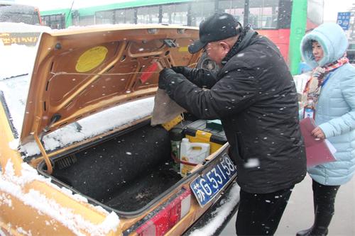 2月7日上午,港城驟降大雪。為確保惡劣天氣下出租車(chē)營(yíng)運(yùn)安全,連汽出租公司及時(shí)組織管理人員走上街頭,提醒廣大出租車(chē)駕駛員做好行車(chē)安全,并對(duì)車(chē)輛安全技術(shù)部件進(jìn)行檢查。