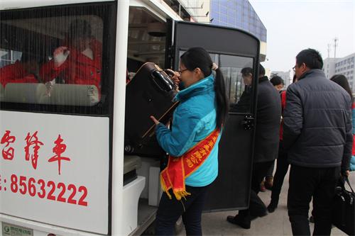 參觀完陳列館,女職工們準(zhǔn)備把精神的感動化作助人的動力,表示也想真真正正地當(dāng)一回“雷鋒車”手,讓自己也投身到這份事業(yè)中去。于是,大家兵分兩路,一部分人在汽車總站或幫過安檢的旅客提拿行李,或幫助旅客把行李搬運(yùn)到候車廳;而另一部分人則跟隨“雷鋒車”手的步伐趕往火車站,準(zhǔn)備接送從寶雞至連云港再轉(zhuǎn)乘長途客車的旅客。當(dāng)時,由于火車晚點(diǎn),大家在出站口的寒風(fēng)中足足站了半個多小時,卻沒有絲毫抱怨。當(dāng)旅客出站時,身佩綬帶的女職工們主動做起了志愿者,她們有的攙扶老人及孩子出站,有的幫旅客拿行李,有的引導(dǎo)需要的旅客上“雷鋒車”,人人興致勃勃。在這春寒料峭時節(jié),大家的行動無疑是給火車站的旅客們送來了陣陣暖流。