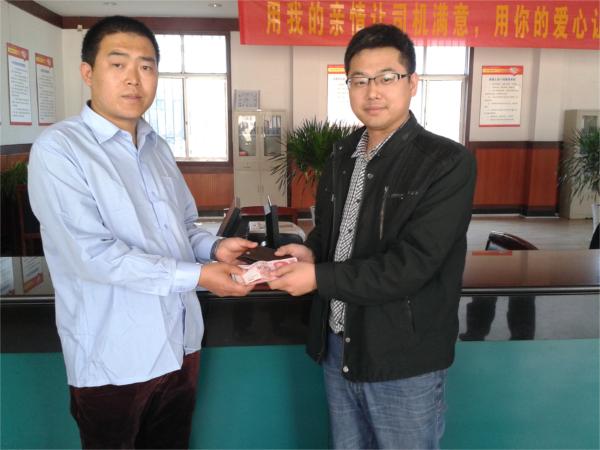 據(jù)了解,4月23日上午9時許,在上海工作的孫先生在連云港火車站乘坐一輛出租車前往東盛名都廣場。由于和客戶約定的時間比較急,一到目的地,孫先生就匆忙付了打的費下了車,他并沒有意識到自己隨身攜帶的錢包掉在了車上。據(jù)悉,錢包里不僅有3600多元的現(xiàn)金,還要身份證、駕駛證和銀行卡等重要證件!板X包丟了,我身無分文,連最基本的吃飯和住宿都成了大問題。補辦那些證件需要一定的時間,肯定會給我的工作和生活造成非常大的麻煩。當時下車時雖然留了打車發(fā)票,但是我不清楚如何分辨發(fā)票上的內(nèi)容。由于出租車存在一定的流動性,我更不敢保證錢包不被出租車上其它的乘客撿走。萬般無賴之下,我想到了向110求助,可是讓我沒想到的是,不一會兒,我就被告知我的錢包已經(jīng)被出租車師傅交到了連汽出租車公司的服務中心,我隨時都可以到服務中心領回自己的錢包。連汽出租公司和110能這么及時、快速的幫助我找回丟失的錢包,我只能用一個詞來形容整個事情的經(jīng)過:完美!睂O先生表示。