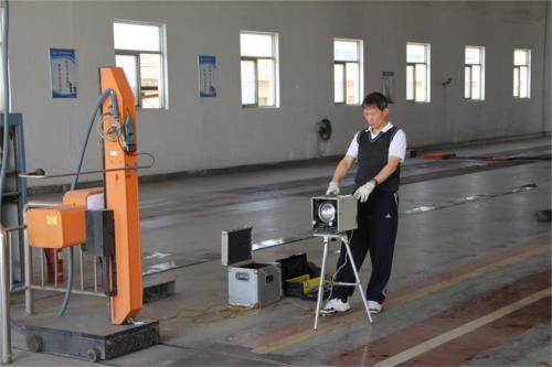 期間,標定工作組根據相關標準和要求,采取實地勘測、查閱資料、數據比對等形式,對機動車檢測站的檢測設備進行嚴格檢查和檢驗。通過全面細致的檢驗,檢測中心的滾筒式車速表試驗臺、滑板式汽車側滑試驗臺、平板式制動軸重檢驗臺、全自動前照燈檢測儀、汽車排放氣體測試儀、煙度計等安檢設備順利通過檢定。