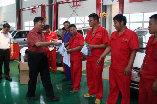 連日來(lái),本市天氣持續(xù)高溫,生產(chǎn)一線職工更是面臨酷熱天氣的嚴(yán)峻考驗(yàn)。為切實(shí)做好一線高溫季節(jié)防暑降溫工作,2014722日上午10:20分,海通集團(tuán)倪愛傳總經(jīng)理、工會(huì)主席王中永一行在汽服公司趙士強(qiáng)總經(jīng)理、劉元祥書記、趙明主席陪同下,來(lái)到寧海公司生產(chǎn)車間,為一線職工送來(lái)毛巾、飲用水等防暑降溫物品。倪愛傳總經(jīng)理圍繞生產(chǎn)車間巡視一圈后,要求權(quán)屬企業(yè)認(rèn)真做好夏季高溫天氣防暑降溫工作,積極穩(wěn)妥推進(jìn)企業(yè)安全生產(chǎn)。