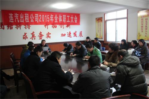 2月9日上午,連汽出租公司在公司會議室組織召開2015年全體職工大會。公司領(lǐng)導(dǎo)班子、各部門負(fù)責(zé)人等共聚一堂,回顧總結(jié)2014年工作,科學(xué)研判生產(chǎn)經(jīng)營“新常態(tài)”,重塑改革發(fā)展“新動力”。