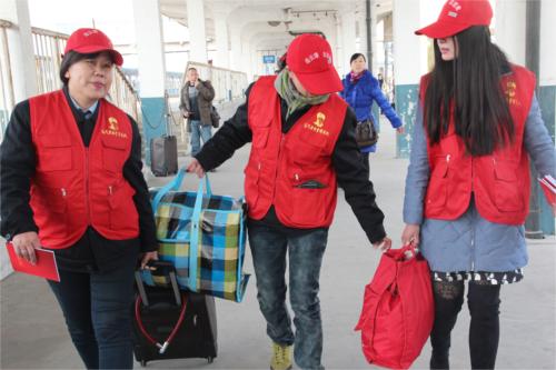 她們身穿紅馬甲,精神抖擻,不懼辛苦,或在車站候車廳幫助工作人員維持旅客秩序,或為老、弱、病、孕、殘等行動不便的乘客提供貼心周到的服務(wù),在3個多小時的志愿服務(wù)中,人人興致勃勃,忙的不亦樂乎。