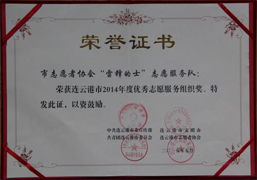 連汽“雷鋒的士”車隊(duì)榮獲“連云港市2014年度優(yōu)秀志愿服務(wù)組織”榮譽(yù)稱號(hào)