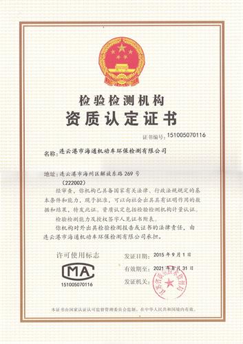 2015年9月1日,連云港市海通汽車環(huán)保檢測有限公司順利獲得由江蘇省質(zhì)量技術(shù)監(jiān)督局頒發(fā)的資質(zhì)認定證書,此證書的獲得為機動車環(huán)保檢測賣出了關(guān)鍵的一步,同時也表明《連云港市海通機動車環(huán)保檢測有限公司》具有為社會提供準確檢測、出具相應的檢測數(shù)據(jù)能力。
