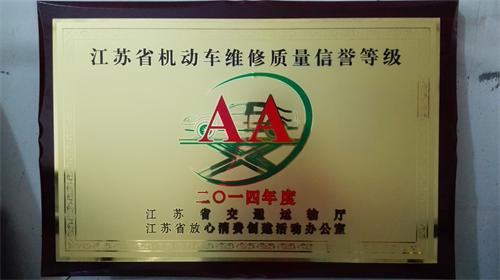 2015年10月29日,從市運(yùn)管處獲悉,經(jīng)省交通運(yùn)輸廳綜合評比,在2014年度機(jī)動車維修質(zhì)量信譽(yù)評比中,連云轎車修理廠獲得“AA”等級。
