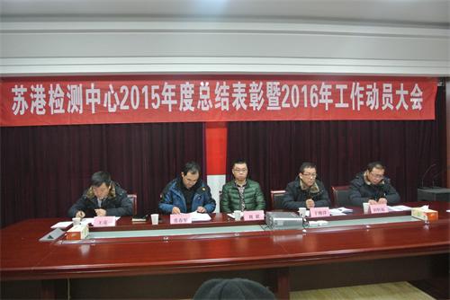 2016年2月1日下午,蘇港檢測中心全體員工召開了2015年度總結(jié)表彰暨2016年工作動員大會,會議由黨支部書記于俊洋同志主持,汽服公司副總經(jīng)理劉超應(yīng)邀參加,蘇港檢測中心領(lǐng)導(dǎo)班子、部分職工代表參加會議。