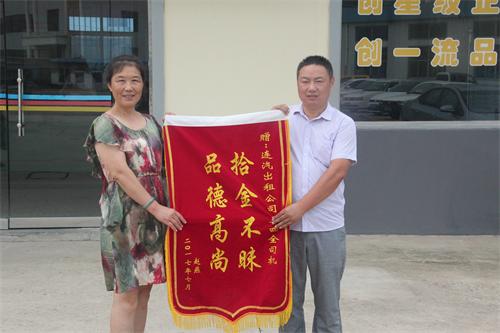 7月18日上午,市民趙女士將一面寫有“拾金不昧 品德高尚”的錦旗送到了連汽出租公司,感謝連汽出租公司蘇G56822駕駛員張四全拾金不昧,使她丟失的行李箱失而復得。