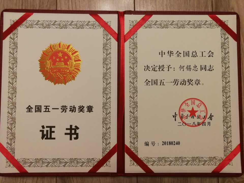 繼2017年5月份何錫忠同志被江蘇省總工會授予“江蘇省五一勞動獎章”以來,何錫忠同志堅持生產(chǎn)一線,積極銳意進取,不斷總結(jié)和推進漆藝工作室技術(shù)成果,為連云港市漆藝技術(shù)進步、技術(shù)人才的培養(yǎng)和儲備做出了積極貢獻。經(jīng)基層單位申報、地市總工會審核、全國總工會審批,修理公司何錫忠同志被授予“全國五一勞動獎章”。
