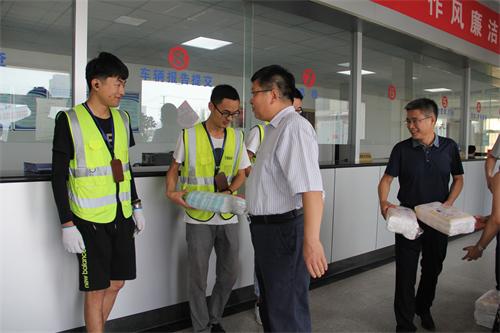 為了讓一線職工在炎炎夏日感受到一份來(lái)自集團(tuán)的“清涼”關(guān)懷,保障一線安全生產(chǎn)工作順利開(kāi)展,7月25日, 交通控股集團(tuán)黨委書(shū)記、董事長(zhǎng)劉永能、總經(jīng)理、黨委副書(shū)記、副董事長(zhǎng)仲偉濤、工會(huì)主席王中永和工會(huì)副主席張曉紅等在汽服公司領(lǐng)導(dǎo)班子成員的陪同下,深入汽服公司蘇港檢測(cè)中心一線窗口服務(wù)大廳走訪慰問(wèn),為一線職工發(fā)放了飲料、綠豆、毛巾、香皂等防暑降溫物資,并囑咐一線基層單位要及時(shí)關(guān)注職工暑期作業(yè)安全,落實(shí)好防暑降溫措施,確保職工安全度夏。