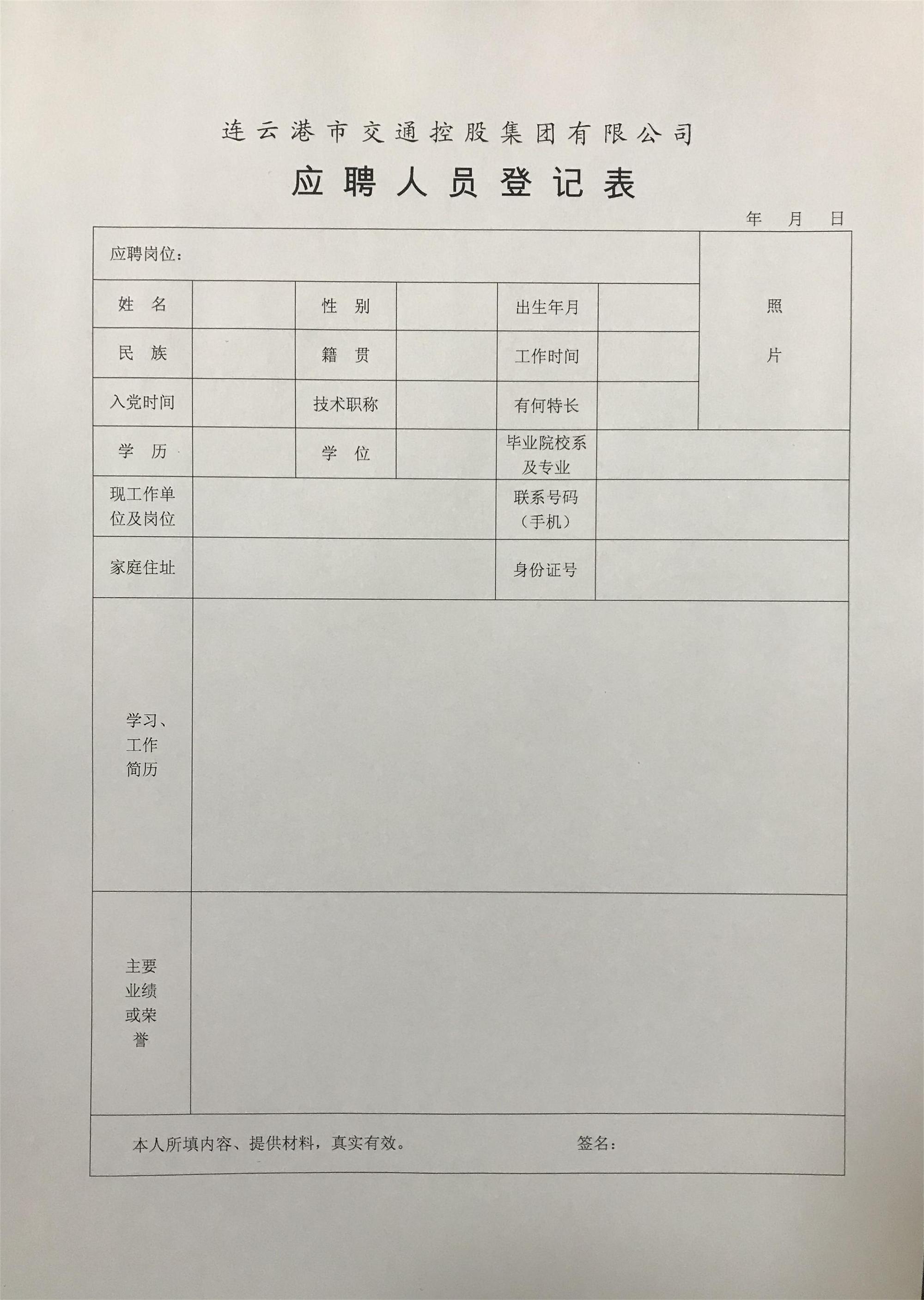 附:《連云港市交通控股集團(tuán)應(yīng)聘人員登記表》